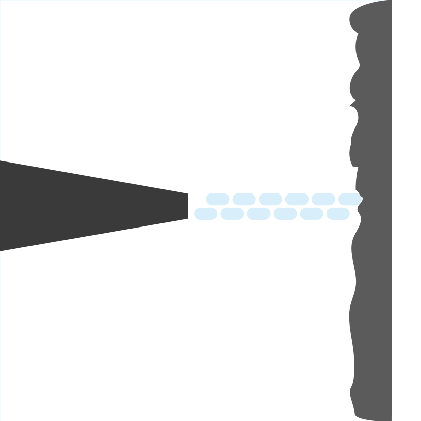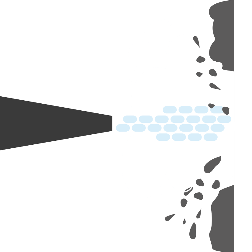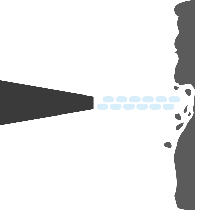 Compressed air pressure blasts dry ice pellets which sublimates on impact as carbon dioxide gas (CO2). Due to expansion, the contaminants are lifted and separated from the surface.