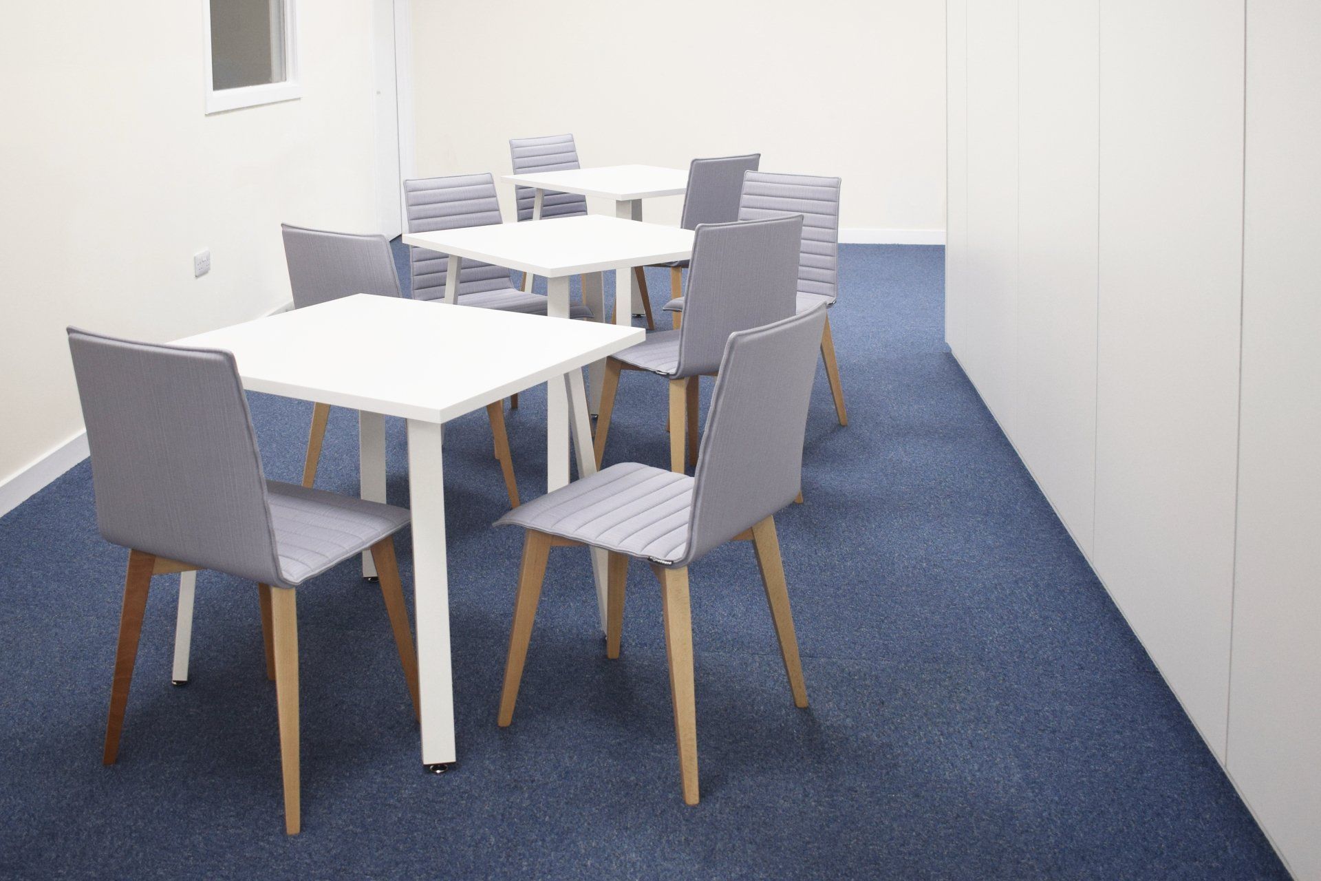 A welcoming, contemporary reception and two client meeting rooms were also designed to ensure that less abled staff and clients could have a private space to work and discuss their insurance matters. The boardroom on the first floor has a fully glazed front allowing light to filter into the room with the boardroom table & chairs comfortably accommodating 12.